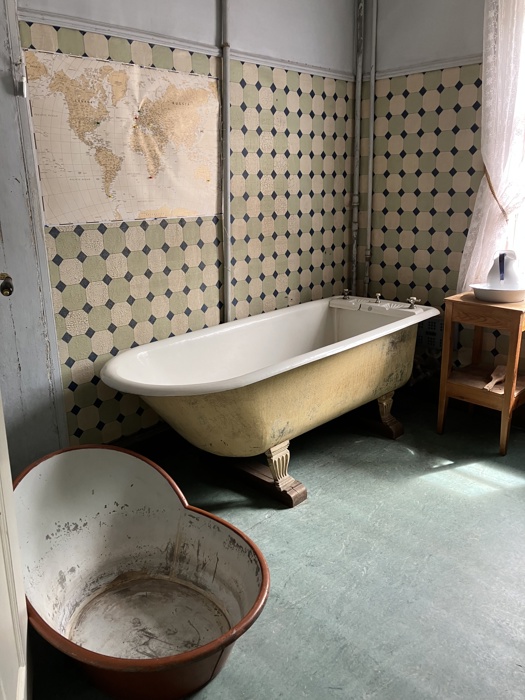 Før vi entret hovedbygningen fikk vi en liten innføring i byggets historie . Vår omviser Ida, fortalte levende om huset og hva det var brukt til.